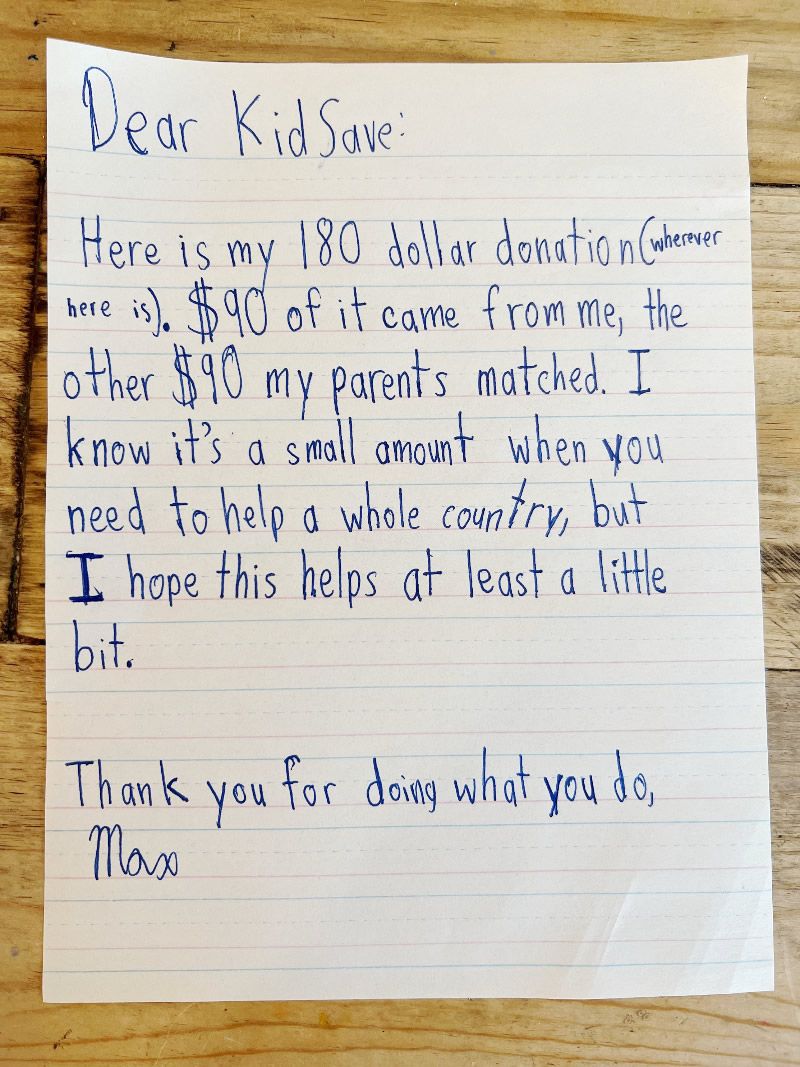 A special thank you to Kellan, who so generously donated his birthday money to help kids in Ukraine.