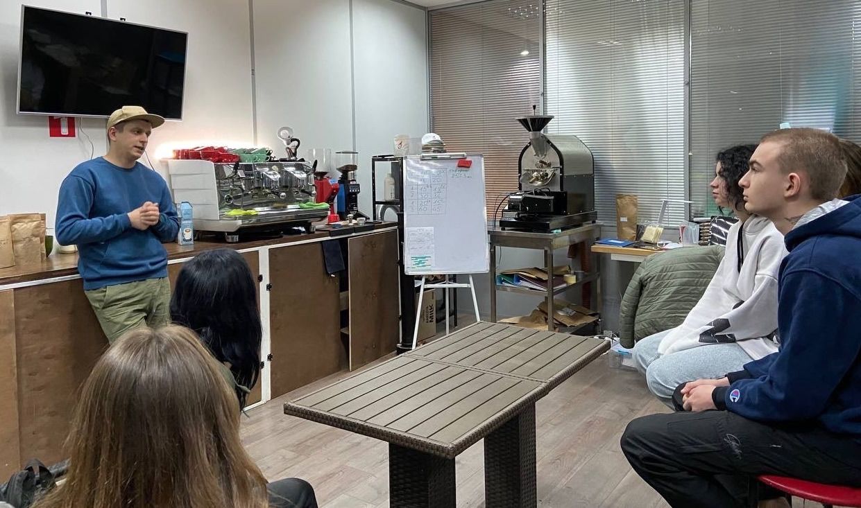 On another outing, the Pathway to Success teens dove into the world of coffee as they toured the Kava Pro Company in Kyiv. On this tour, they were able to learn the entire production process that goes into a delicious cup of coffee—from roasting the beans, to packaging and storing, to grinding and brewing, they were able to watch it all. Then, the teens got to act as professional taste-testers as they tasted various types of coffee to learn about the different flavor components.